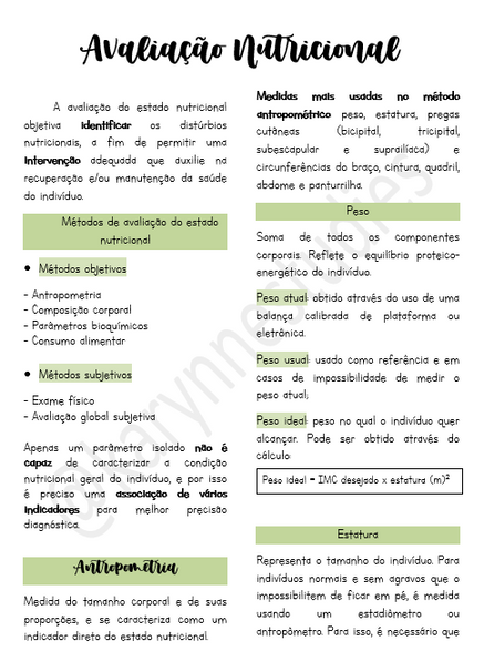 Resumos de Avaliação Nutricional: Guia de revisão para alunos